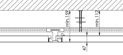 Ci-dessus hauteur minimale de mise en œuvre dans le cas d'une utilisation de suspensions Nonius (alternative possible avec suspentes tiges filetées pour hauteur de mise en oeuvre réduite, nous consulter).